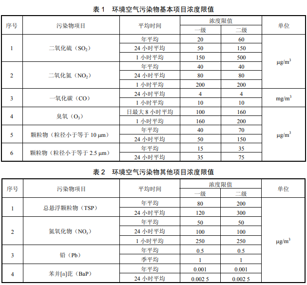 一类区适用一级浓度限值,一类区适用二级浓度限值。一、一类环境空气功能区质量要求见表和表 2。