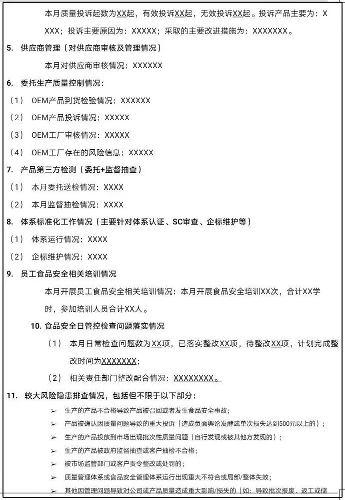 食品安全风险管控清单